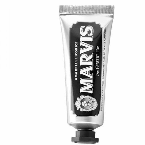 خمیردندان شیرین بیان مارویس Marvis Amarelli Licorice حاوی مواد موثر خالص و قوی برای محافظت از دندان ها در برابر پوسیدگی، رفع پلاک های باکتریایی، پاکسازی جرم های سرسخت و تازگی بخشی دهان می باشد. خمیردندان مارویس دارای طراحی لوکس و طعم تمیز و فریبنده شیرین بیان آمارلی بدست آمده از منطقه کالابریای ایتالیا برای ماندگاری طولانی مدت آرومای جذاب و خلاقانه است. این خمیردندان همچنین حاوی فلوراید 0.2 درصد برای محافظت در برابر پوسیدگی و دارای بافت فشرده متفاوت همراه با طعم جذاب است و ترکیبی از احساسات سنتی، مترقی و جذاب را برای لذت بخش کردن برنامه روزانه محافظت از دندان فراهم می کند