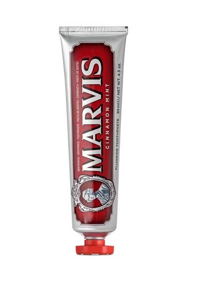 خمیر دندان نعنا و دارچین مارویس Marvis اصل حجم 85 میلی لیتر، یک خمیر دندان روزانه با مواد مینرال و بر پایه فلوراید مینای دندان را دوباره تقویت کرده و در برابر پوسیدگی محافظت می کند. این خمیردندان با هیدروکسید آلومینیوم و دی اکسید سیلیکون فرمول شده، که تمیز کردن کامل و ایمن را انجام می دهند. به دلیل خاصیت سفید کنندگی برای افراد سیگاری و قهوه دوست مناسب هستند و ذره ای به مینای دندان یا لثه آسیب نمیزنند. برای استفاده روزانه توصیه می شوند.