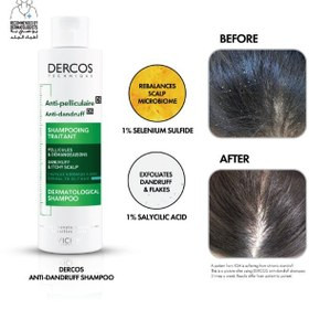 شامپو ضد شوره موهای نرمال تا چرب ویشی VICHY DERCOS Anti dandruff DS shampoo for normal to oily hair، برای استفاده روزانه و از بین بردن شوره سر چرب طراحی شده است.