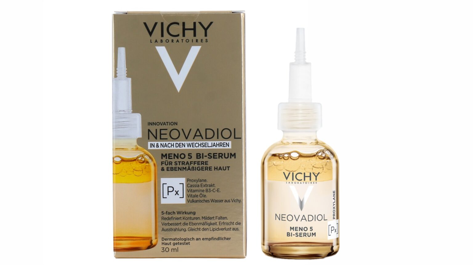 کلاژن یک پروتئین ساختاری است که به پوست استحکام و انعطاف می بخشد. با افزایش سن، تولید کلاژن کاهش می یابد. این کاهش تولید کلاژن می تواند منجر به افتادگی پوست شود. سرم Vichy Neovadiol Meno 5 Bi-Serum حاوی پروکسیلین است که یک ترکیب گیاهی است که به افزایش تولید کلاژن کمک می کند.